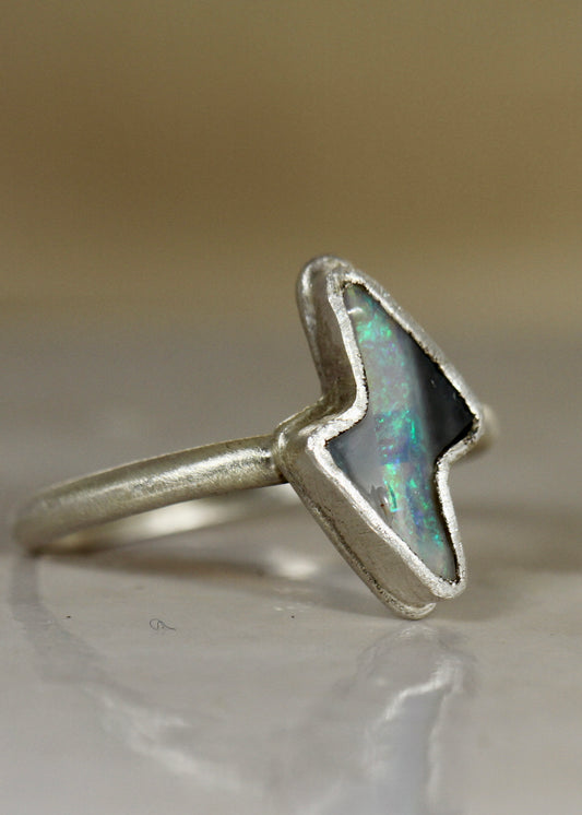 Hand cut, hand shaped and hand polished Australian opal rings set in...