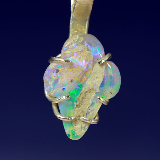 Rough Black Opal Solid Gold pendant - The Blue Lipstick