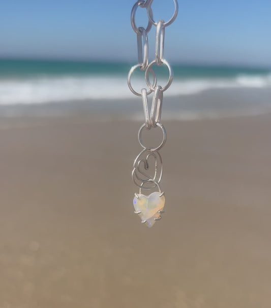 Love You Long Time heart crystal opal charm