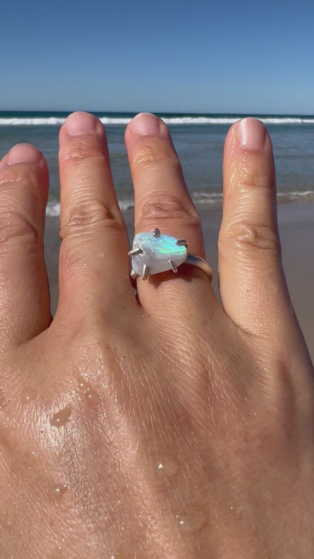 Hand cut, hand shaped and hand polished Lightning Ridge Opal gemstone. Set on a handmade Argentium Silver (94% pure Silver) claw ring band. All made from raw materials with traditional silversmithing techniques by Kê Lì.