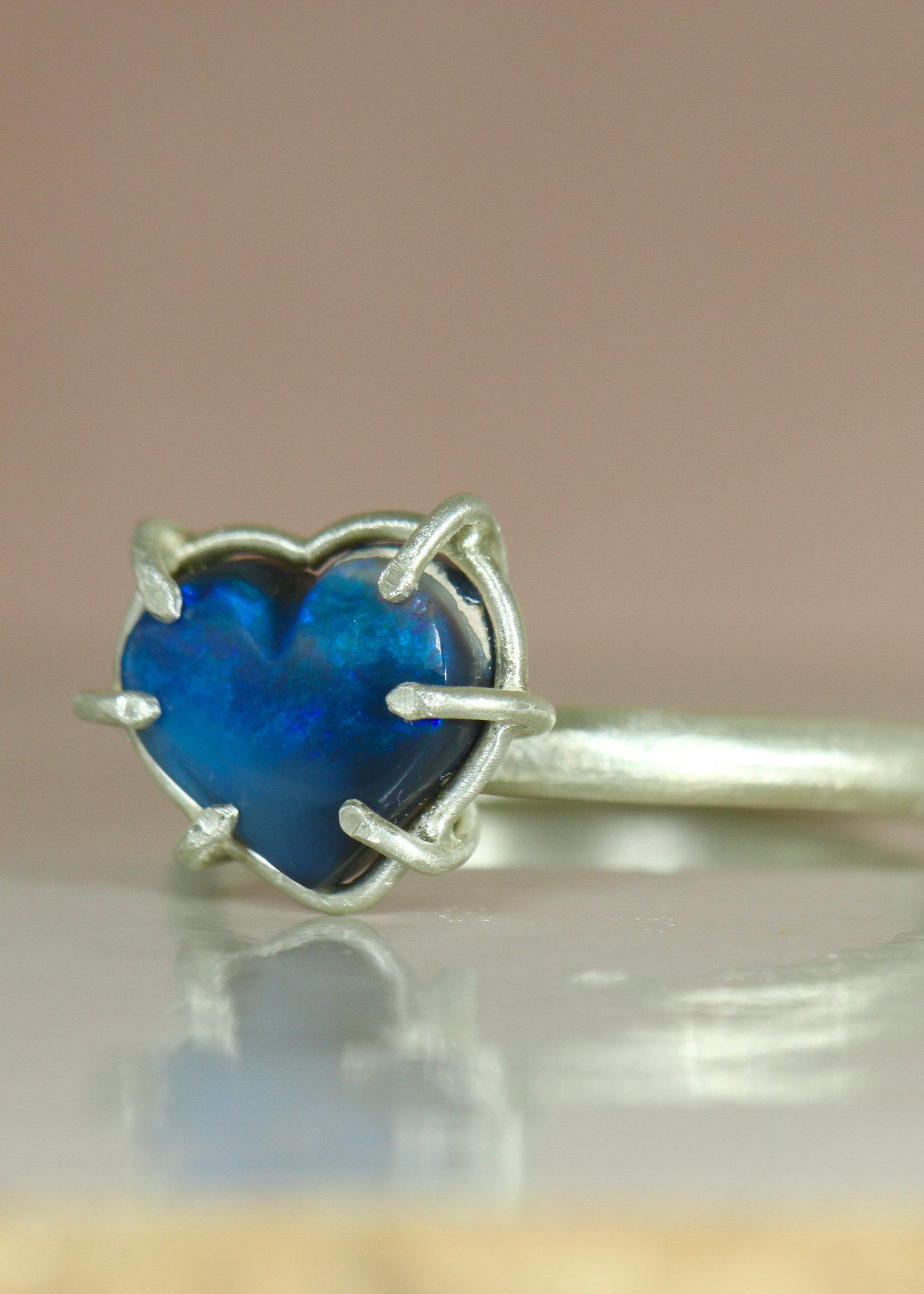 Hand cut natural, solid, Australian black opal from Lightning Ridge carved into a heart shape. 💙 Black Opal with dark blue flashes. 🖤