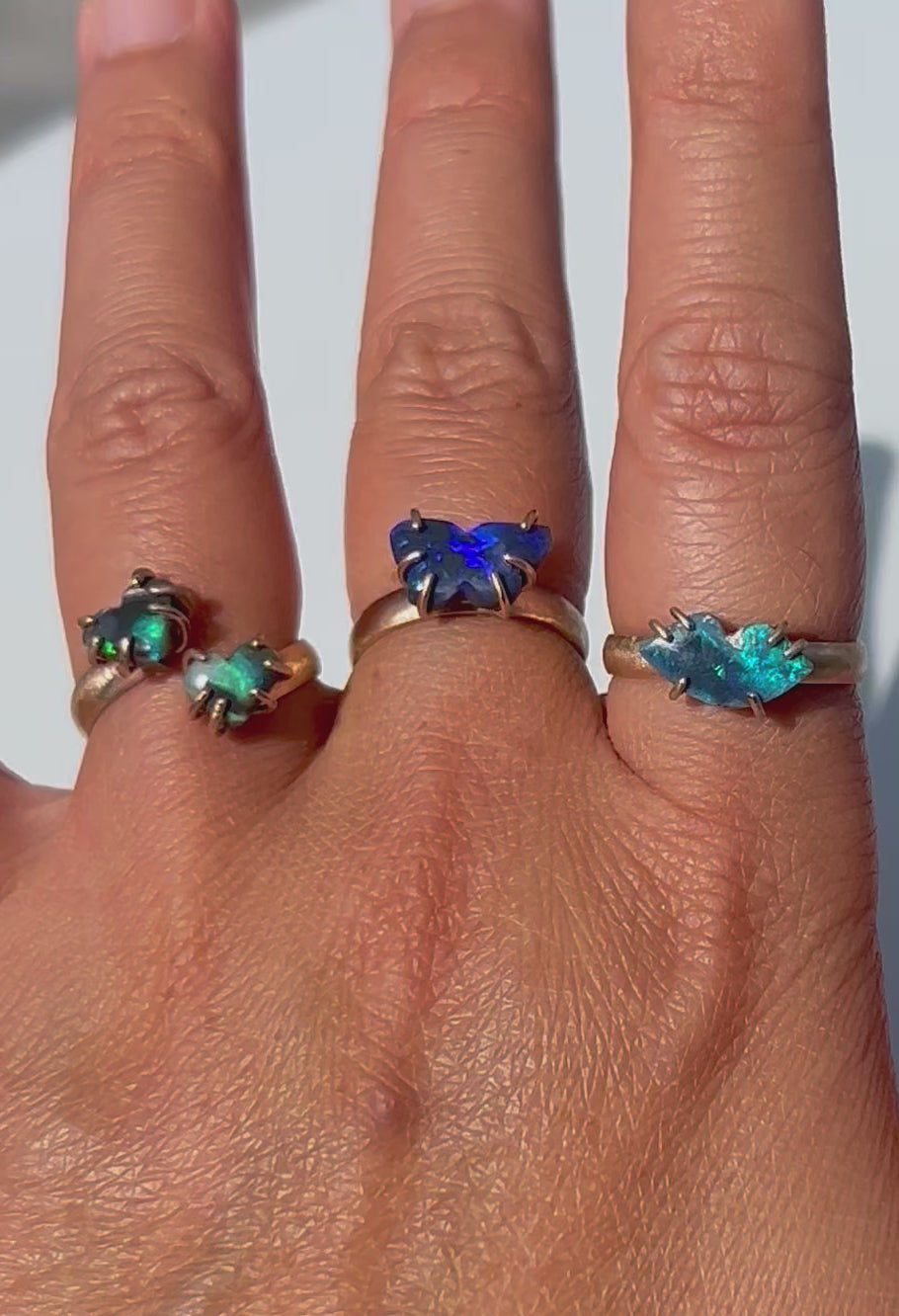 Black Opal ring Blue Opal Lips in Solid 9ct Gold