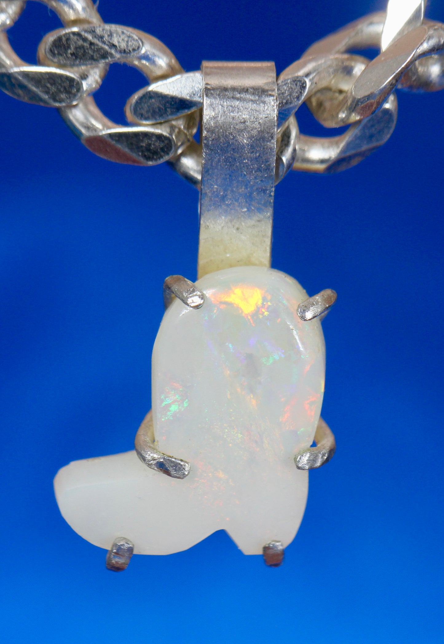Cowboy Boot Opal Pendant in silver
