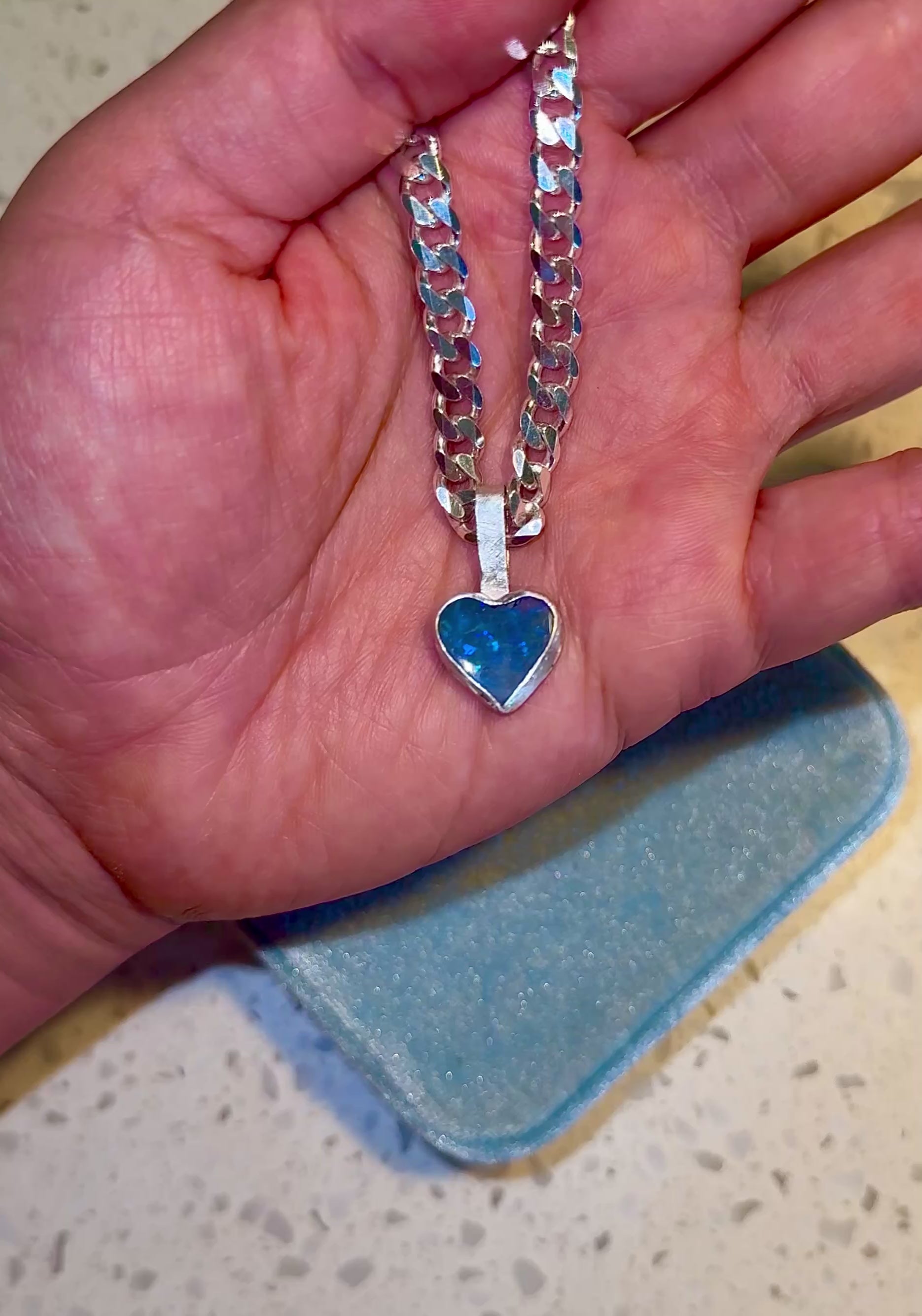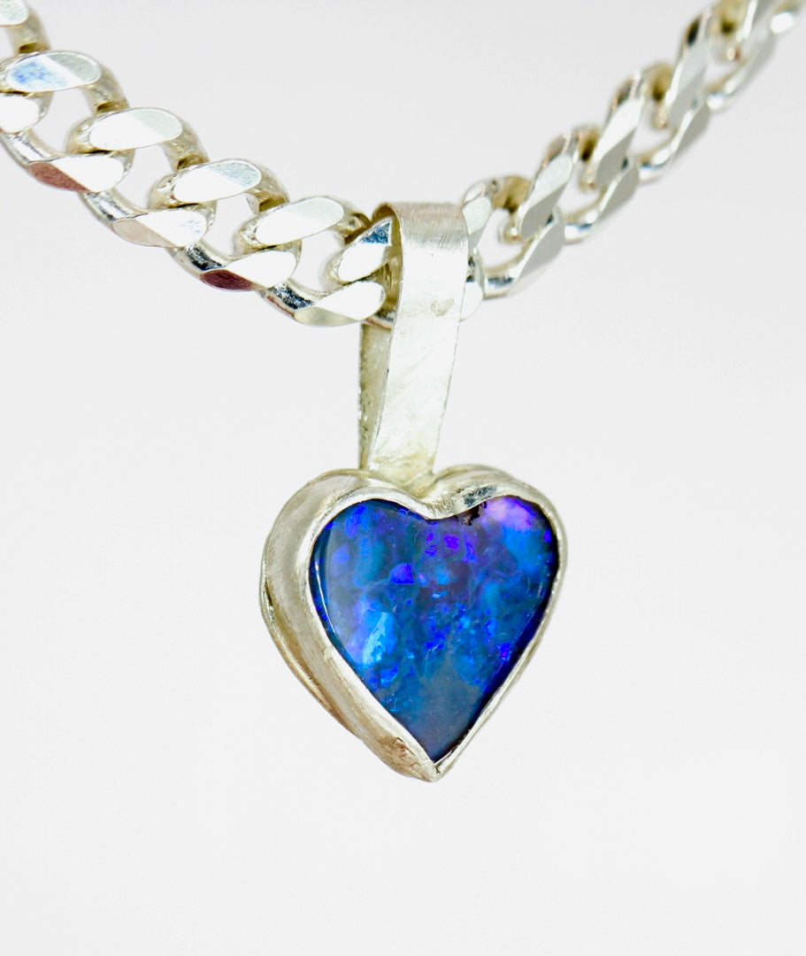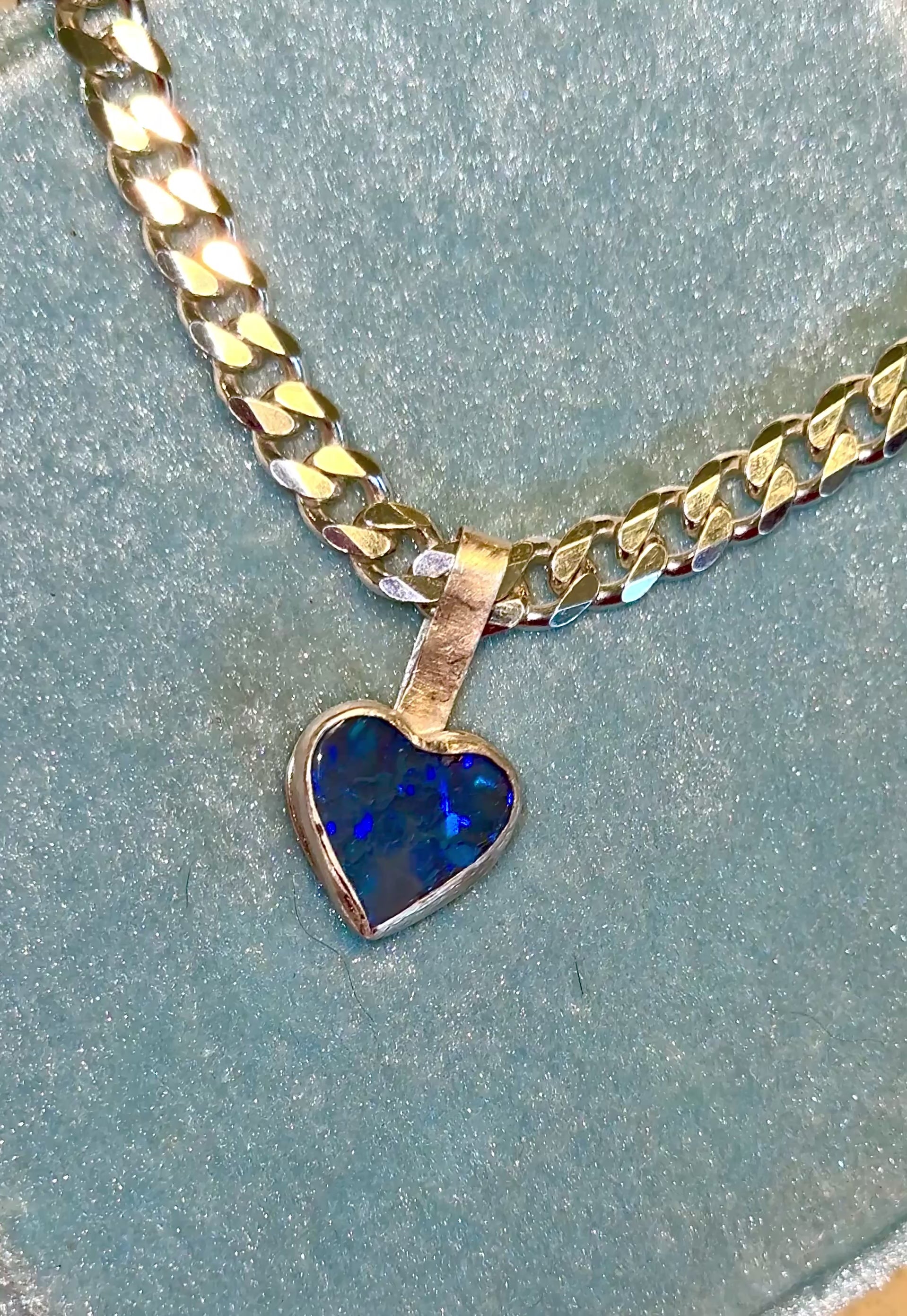 Did you know that blue opals and heart shaped opals are the most requested? So how lucky are you to find an opal pendant that combines the two favourite characteristics!