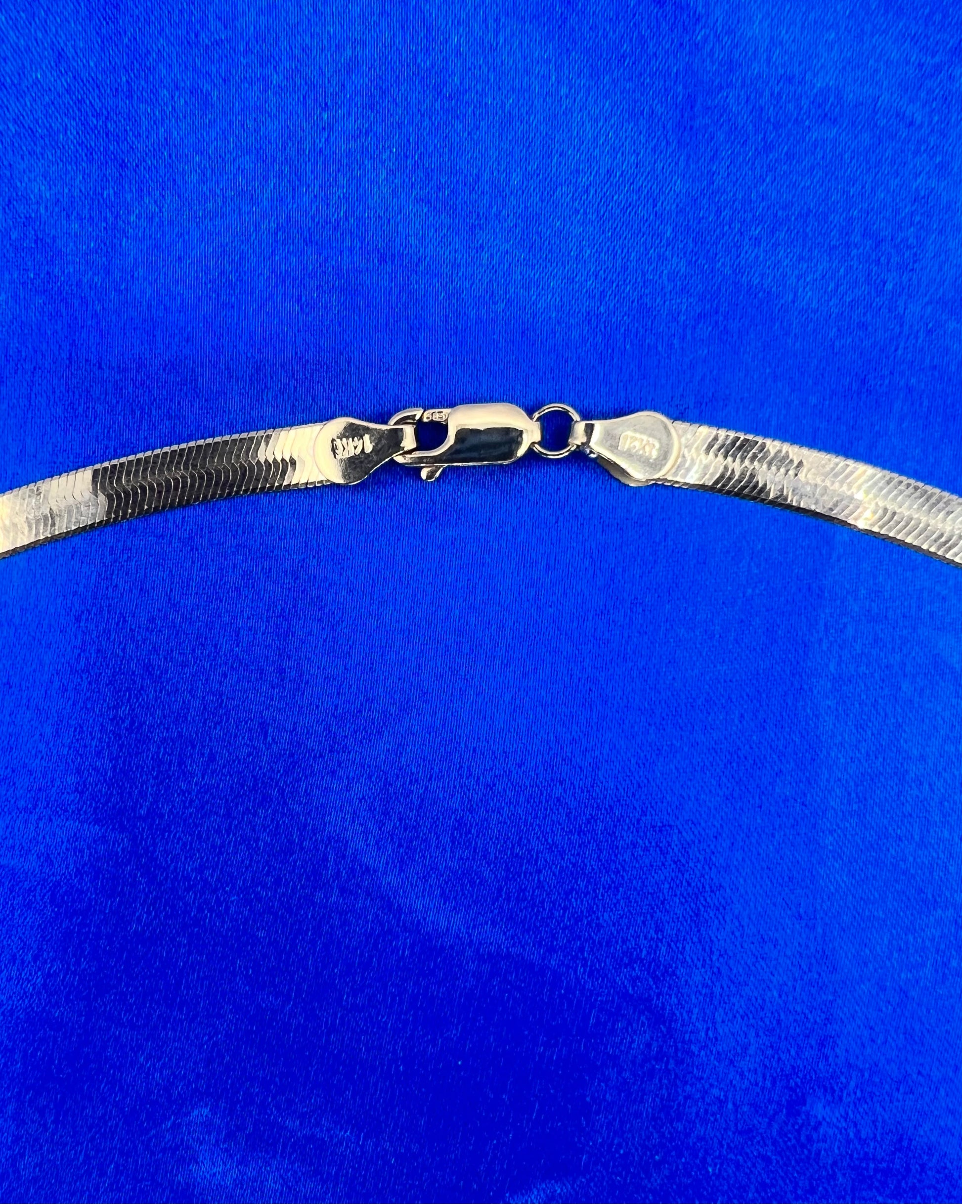 No wonder the celebrities love this look (ahem Hailey Bieber!). A traditional herringbone necklace – this solid 14 karat yellow gold herringbone chain is here to redefine cool. 💛✨ This herringbone necklace is extra wide - a full 5mm width of sleek, low-profile chain with fluidity that's basically jewellery in motion. 🌊