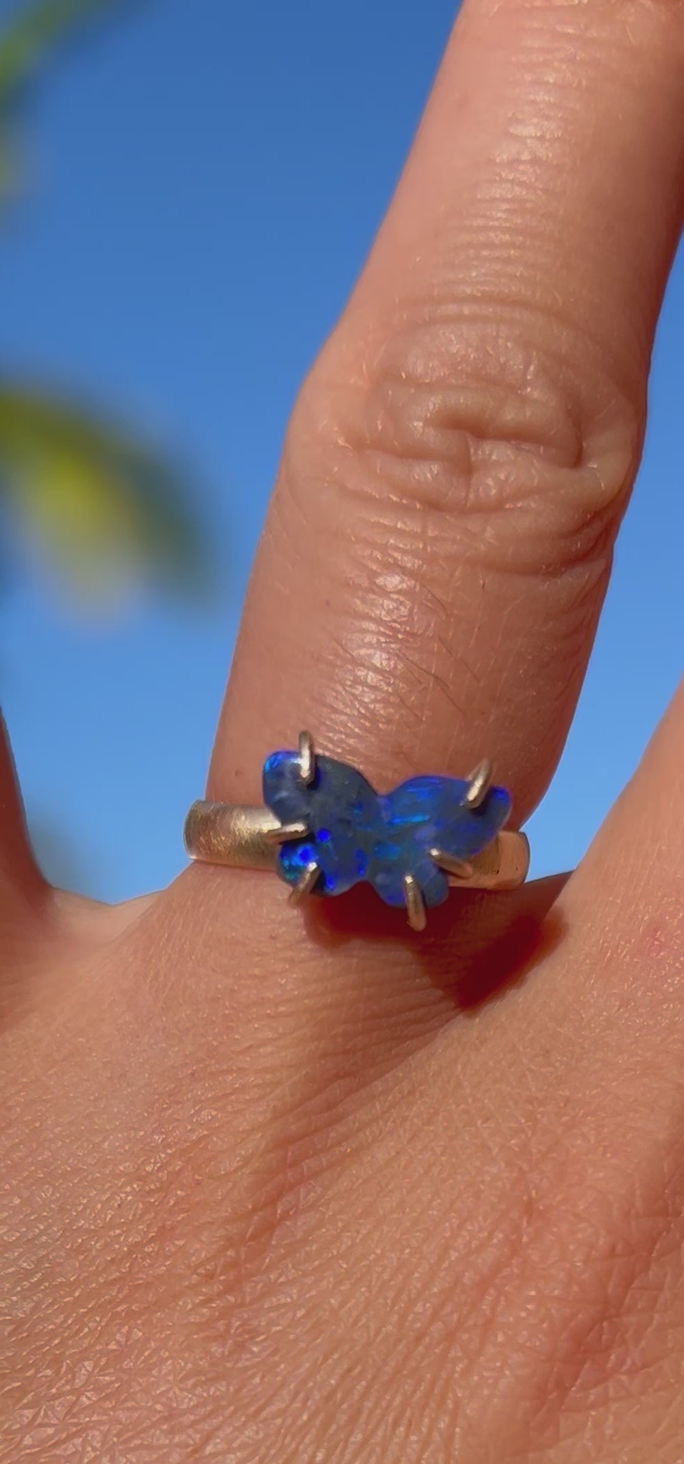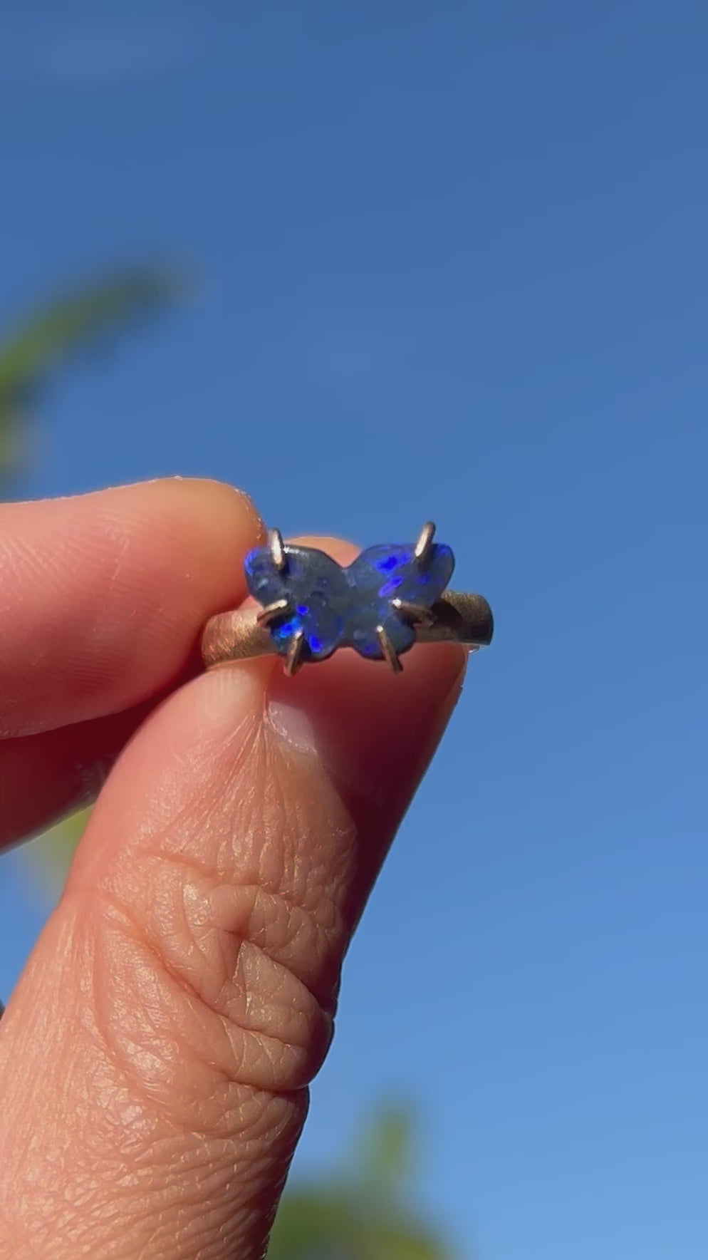 Indigo Butterfly Black Opal ring (Solid 9ct Gold)