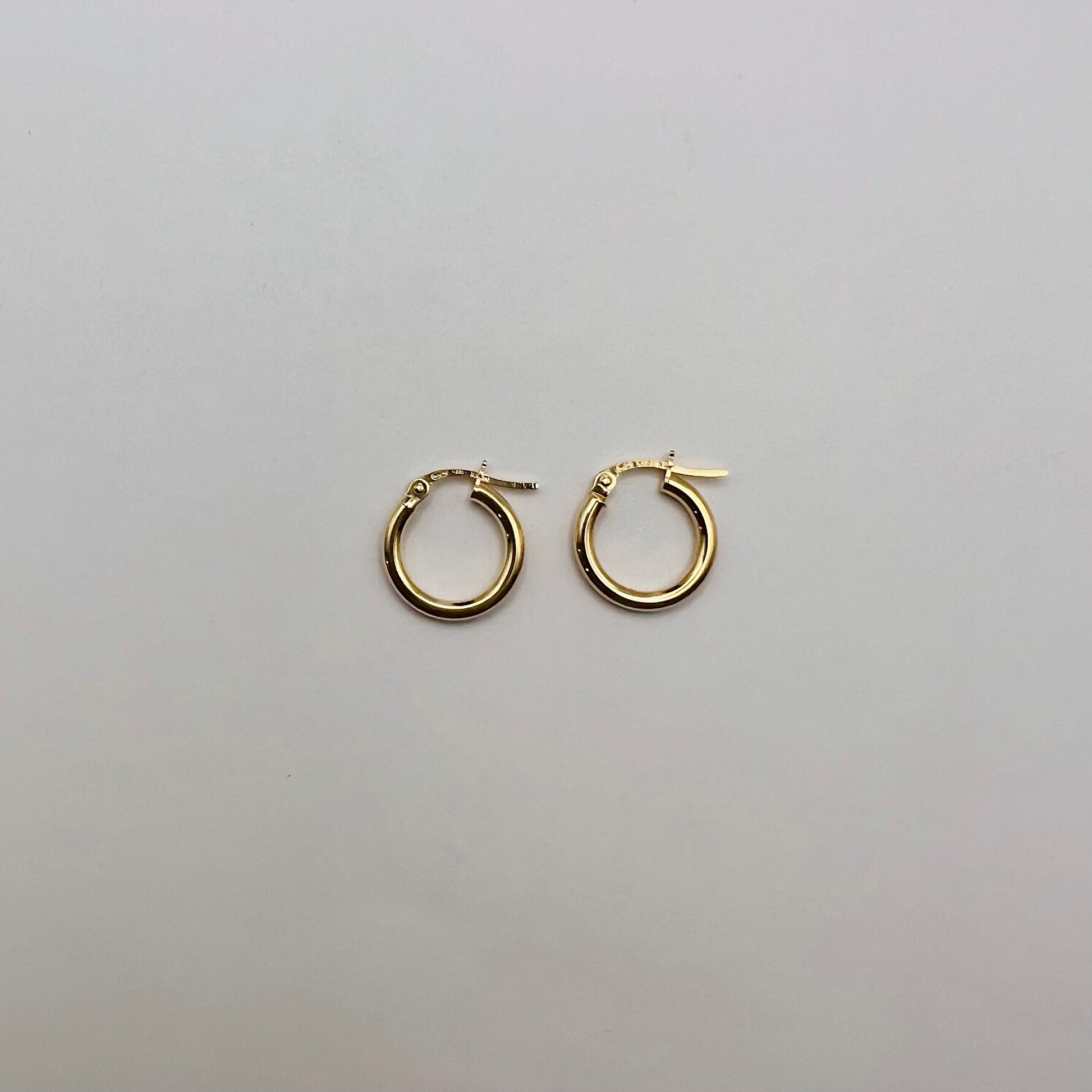 Gold Hoop Earrings Classic Everyday (MADE in ITALY solid 9ct gold) 13 or 14mm