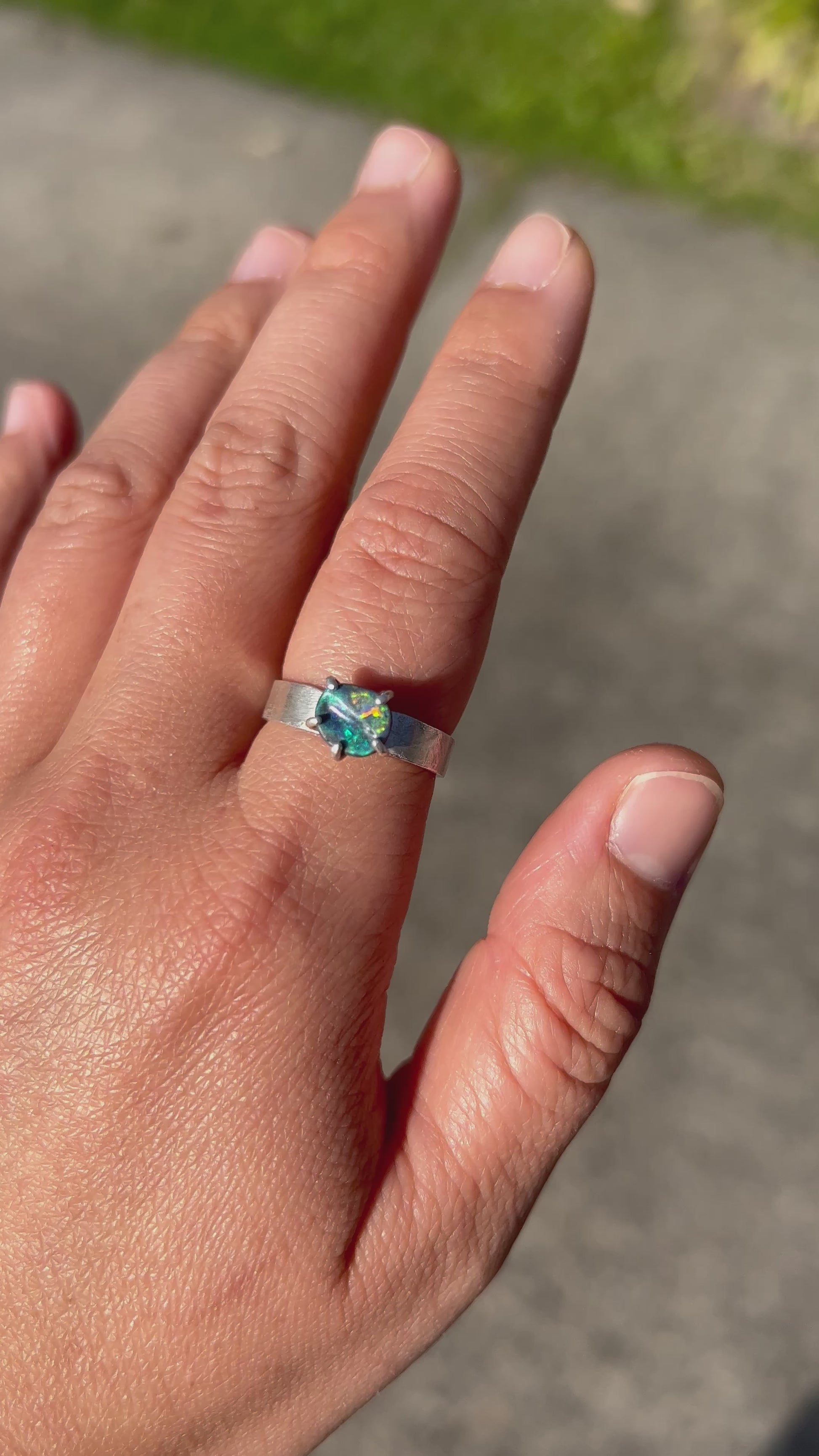 🐳 The 𝒮ℯ𝒶 ℬ𝒾𝓈𝒸𝓊𝒾𝓉 🌅 Opal ring 💍 This ring is a real beauty of a gem. It looks like the deep blue sea with radiant fiery sun rays gleaming on its surface. Literally like this emoji 👉🏽🌅