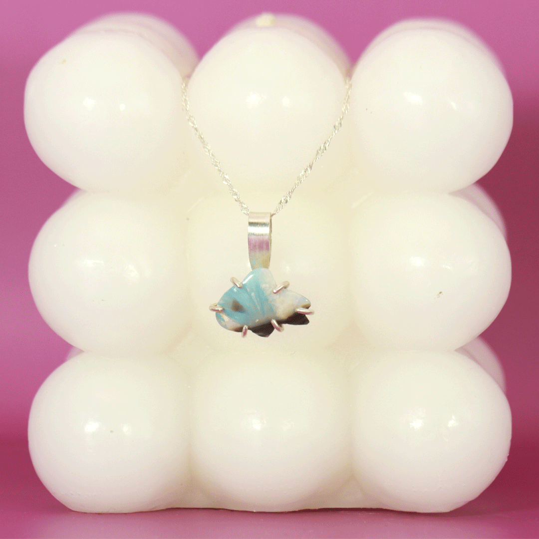 Willy is set on a sterling silver (925) pronged pendant setting that has been handcrafted especially for our charming killer whale.