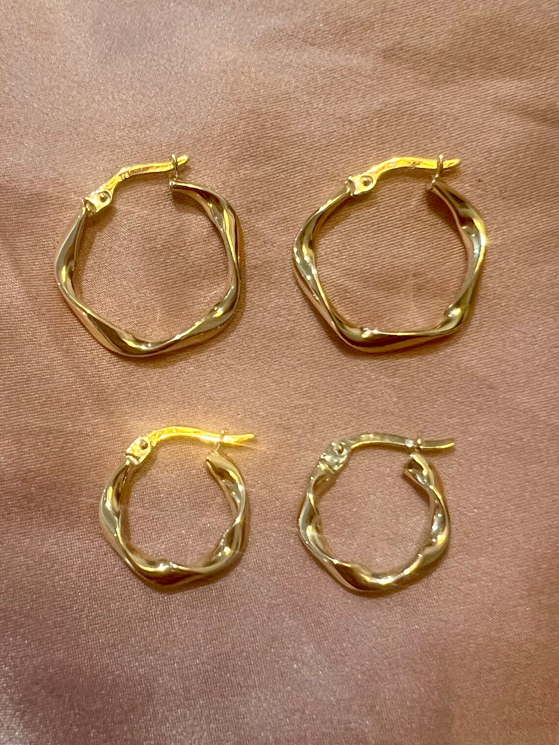 Slight Twist Solid 9ct yellow gold hoop earrings
