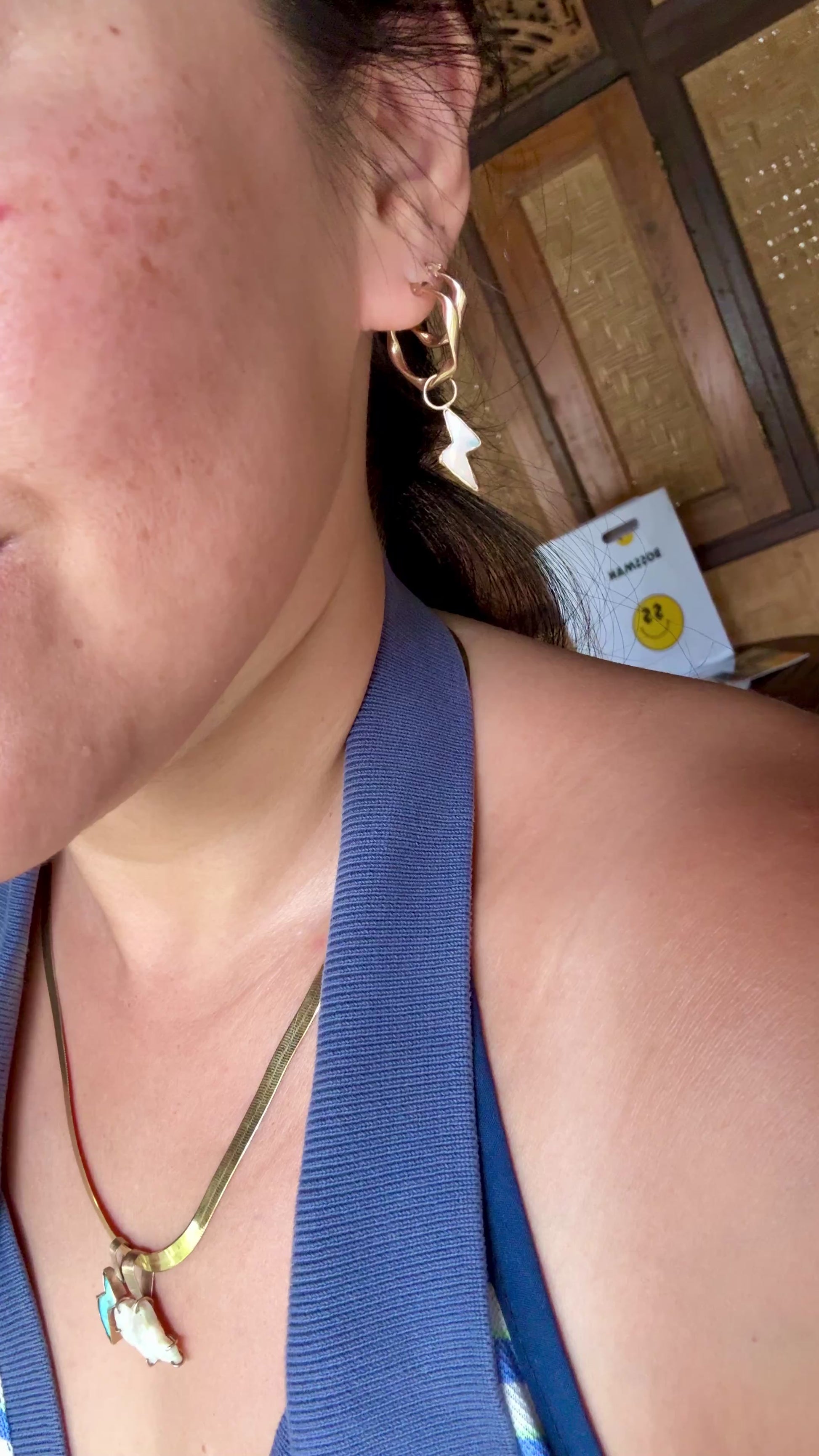 *The larger 15.5mm slight twisted solid gold hoops are shown in the still pictures with opal earring charms hung on them. Where as in the videos both sizes of the hoops are featured.